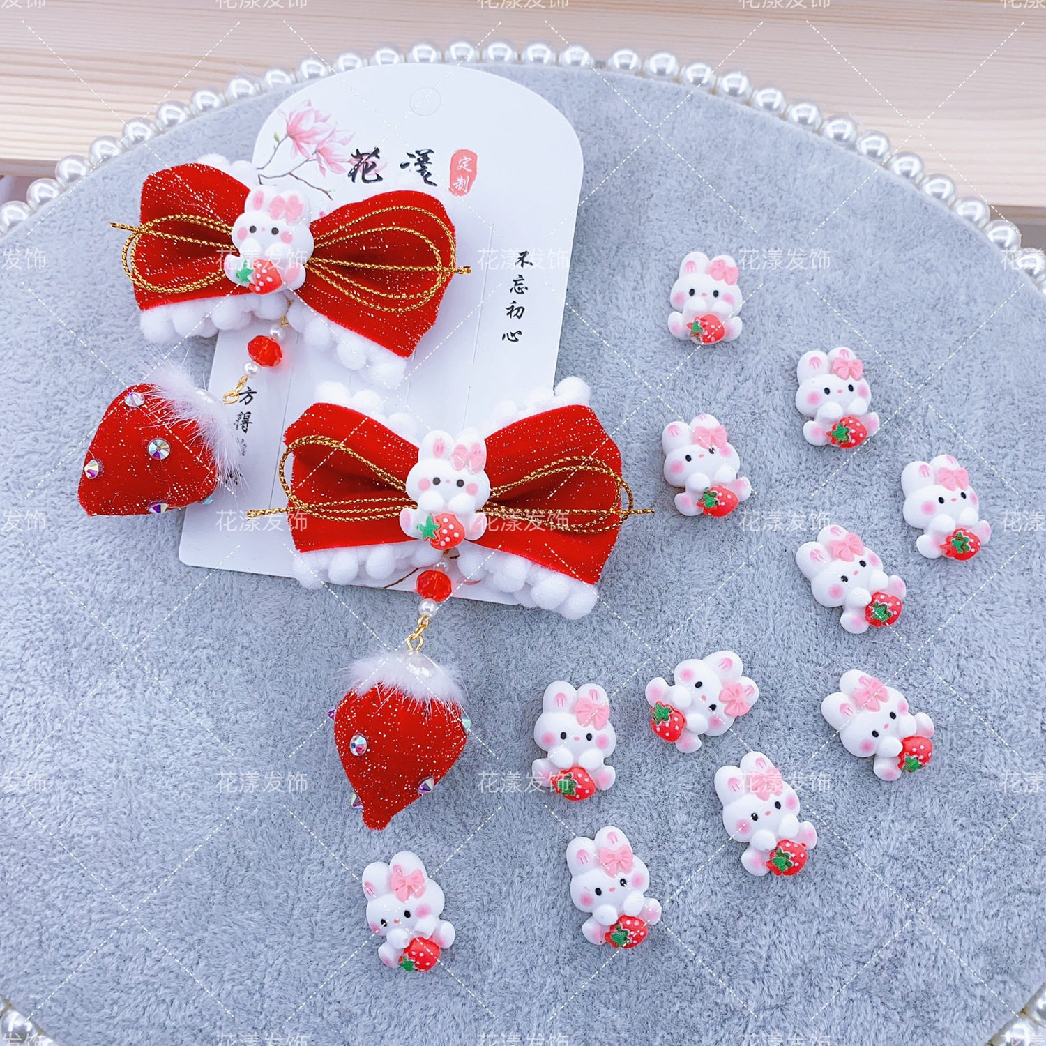 饰品蝴蝶结草莓兔子树脂贴片diy手工发饰儿童发夹发绳手机壳配件热门设计联盟服务商