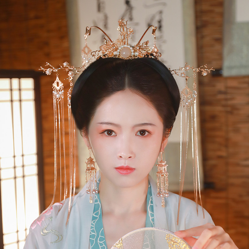清风集原创设计流苏簪子发冠一体套装镀金保色步摇发钗鹤鸣九皋热门设计联盟服务商