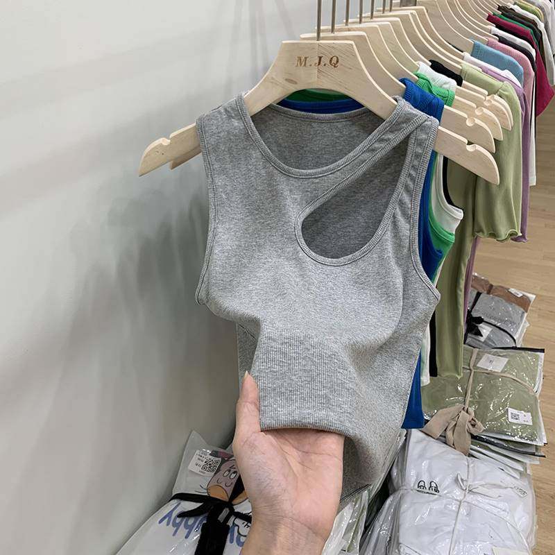 欧货纯欲性感镂空螺纹吊带背心女夏季设计感小众辣妹内搭短款上衣热门设计联盟服务商