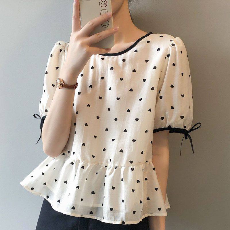 植绒衬衫女夏季薄款短袖设计感小众别致法式上衣泡泡袖甜美娃娃衫热门设计联盟服务商