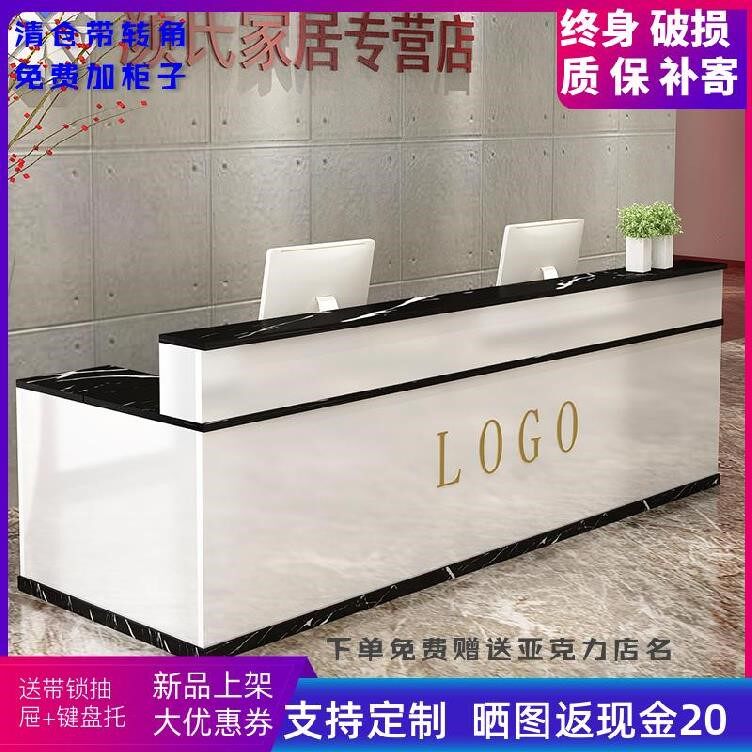 前台接待台艺术创意奶茶店吧台柜商用长桌橙色中式收款台书店绿色热门设计联盟服务商