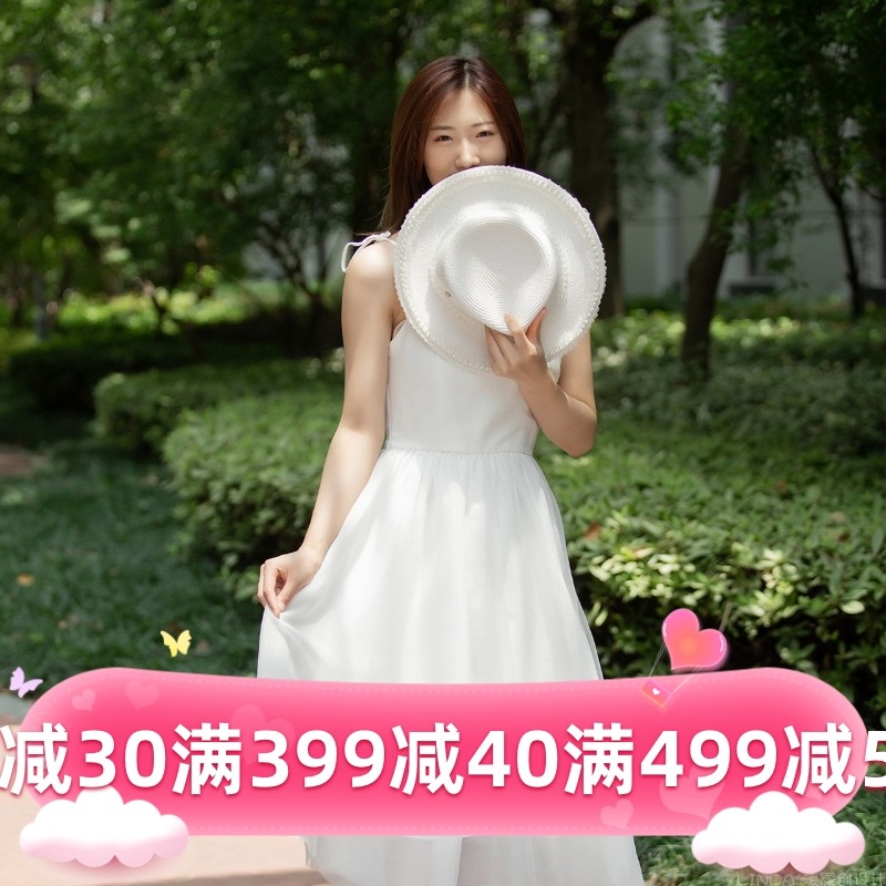 LINDA凌2021秋白色甜美仙女吊带无袖连衣裙女夏设计感蓬蓬中长热门设计联盟服务商